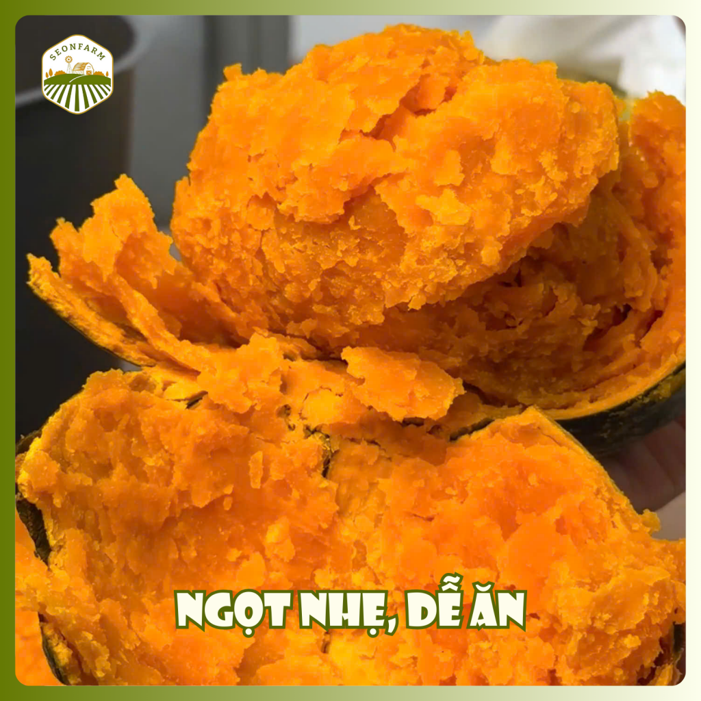 Bên cạnh khoai lang mật, bí đỏ hạt dẻ là cái tên luôn được nhắc đến khi nói về những loại củ quả dễ ăn và giàu dinh dưỡng. Bí đỏ hạt dẻ tại SeonFarm có phần thịt dày, màu vàng cam đẹp mắt. Khi chế biến, bí giữ được độ dẻo tự nhiên, không bở, không nhạt. Vị ngọt của bí đỏ hạt dẻ rất nhẹ, thanh và dễ chịu, không lấn át các nguyên liệu khác khi nấu chung.