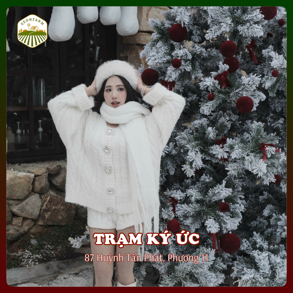 • Tips chụp ảnh: Nên mặc đồ len hoặc áo khoác trắng/kem. Đây là lựa chọn hoàn hảo cho bức ảnh Noel Đà Lạt ấm cúng.